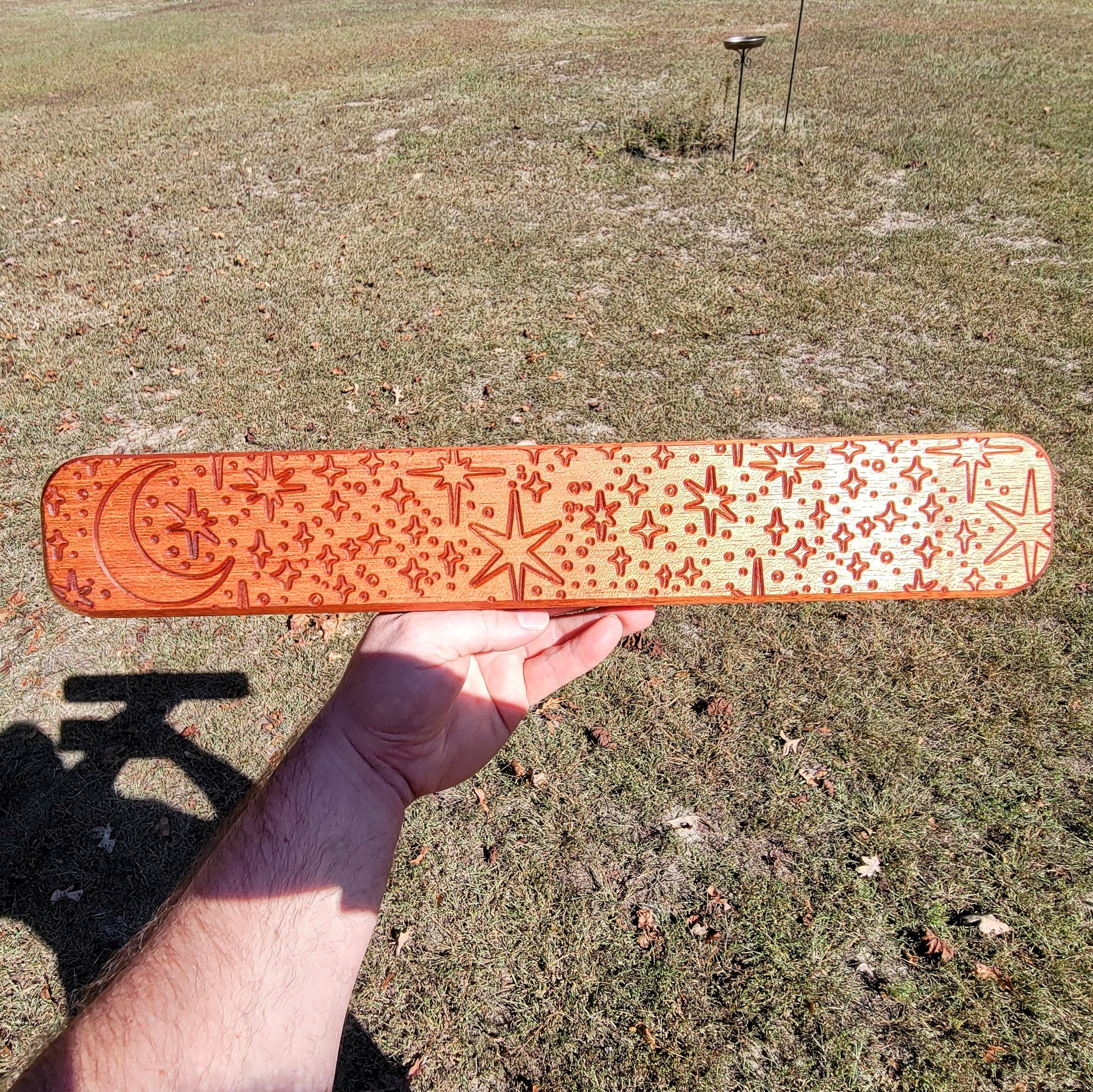 This is an 18" magnetic knife rack. It utilizes neodymium magnets encased in some beautiful Spanish Cedar for strong, mark-free hold. Includes all mounting hardware.